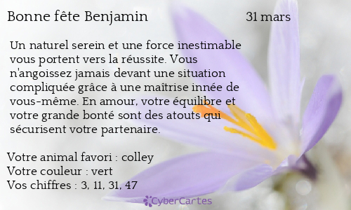 Carte Bonne Fete Benjamin 31 Mars