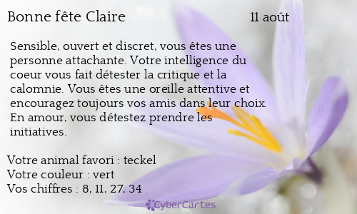 Carte Bonne Fete Claire 11 Aout Balades Comtoises