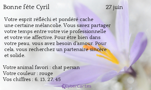Bonne fete cyril. March 6 at 958 PM Bonne Fête et gros bisous à toutes les mamies et particulièrement à la mienne que jaime tellement À tout à lheure 17h50 pour le GrandSlam sur France 3 et pour jouer tous ensemble. Cyril San Nicolas is with Anne Marie Schaak. Tu aurais pu changer de forme jai pris.