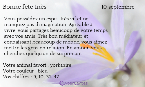 Carte Bonne Fete Ines 10 Septembre