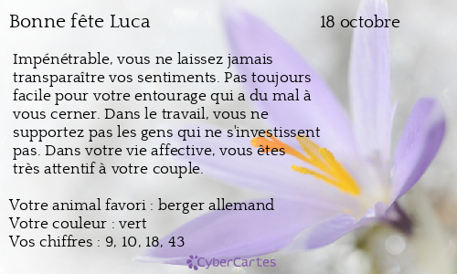 Looking for a name to use in French class or inspiration for naming your baby. Bonne fête Lucas. Bonne Fête Lucas 18 octobre -.