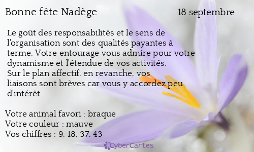 Carte Bonne Fete Nadege 18 Septembre