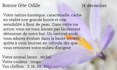 Carte Bonne Fete Odile 14 Decembre