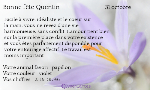 Le 31 octobre cest la fête de Quentin envoyez-lui vite une carte originale et gratuite pour lui faire plaisir. Aujourdhui 31 octobre on fête les Quentin. Je réserve mon don en quelques clics.
